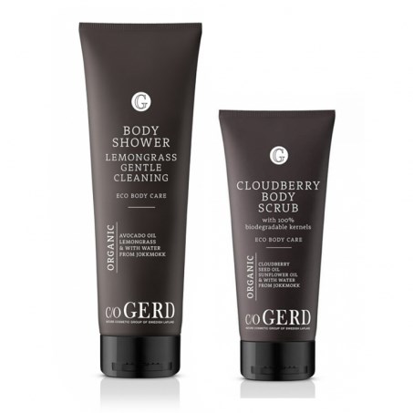 c/o GERD's Body Scrub Cloudberry är en härligt exfolierande kroppsskrubb med aprikoskärnor och arktiska hjortron från svenska Lappland.